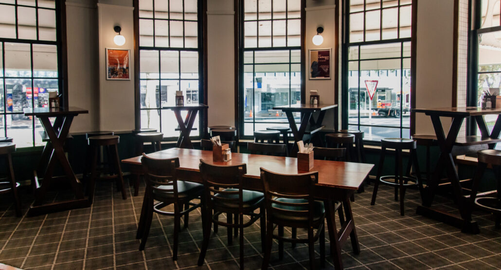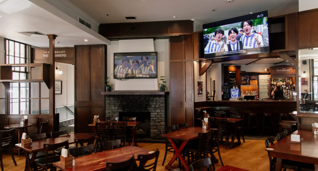 The largest open space available for function hire, this open space is complete with 3 TV screens, a raised platform and can fit up to 120 standing guests or 80 seated.